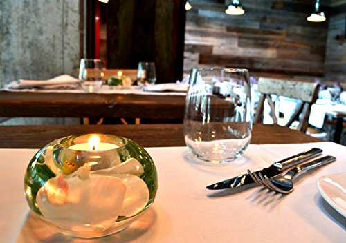 A delicate interplay of candlelight and transparency, these T-Light holders have Champagne Japanese Magnolia blossoms captured in clear resin between walls of glass and "Illusion Water".