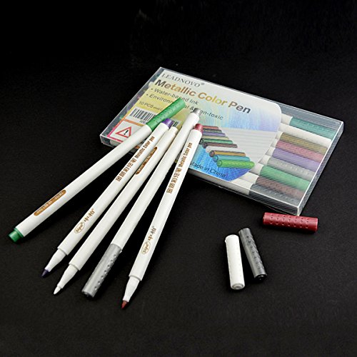 Metallic Marker Pens, LEADNOVO Metallic Color Painting pen Set of 10 Assorted Colors Brush Tip For Birthday Gift Card Making DIY Photo Album Adults Kids