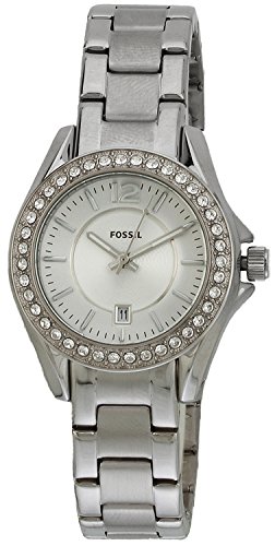 Fossil Ladies Stainless Steel Mini Riley 3-Hand Analog Glitz Watch with Date