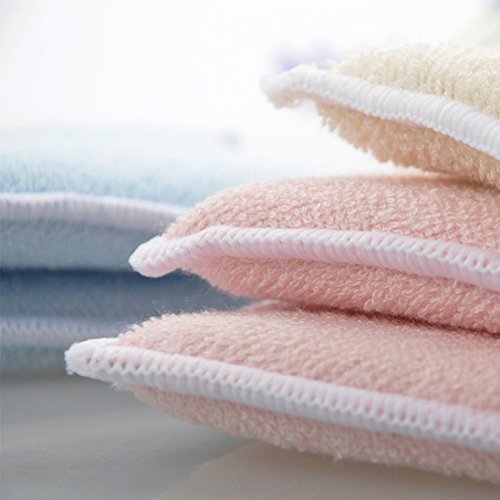 -. Feature : High-quality Bamboo microfiber on two side / Donut-shaped scrubbing pads, Each towel Size: 5'' x 4.3''/ Weight: 30g / Perfect for kitchen and dish cleaning / Also works great in the bathroom / Machine washable, pack of four in assorted colors