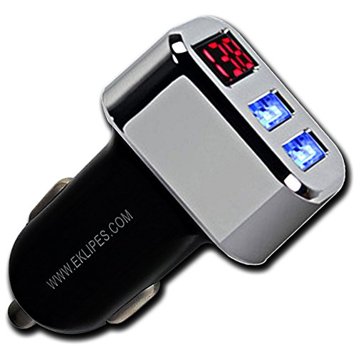 -. Title : EKLIPES EK1-146 Black / Chrome Duo USB Smart Charger with Car Battery Voltage Display, 1 Pack
