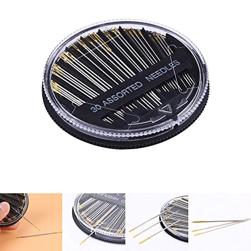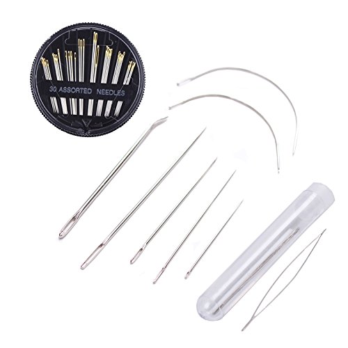 BIHRTC 30-Count Assorted Hand Sewing Needles Set+7Pcs Upholstery Carpet Leather Canvas Repair Curved Hand Sewing Needles+5 Pcs Big Eye Beading Needles with Needle Bottle