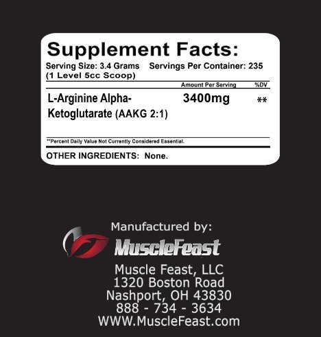 This is HPLC Certified pharmaceutical grade L-Arginine AKG 2:1 What is L-Arginine AKG 2:1? Arginine alpha-ketoglutarate (AKG) is a salt formed by combining two molecules of the amino acid L-Arginine and one molecule of alpha-ketoglutarate. L- Arginine is a nonessential amino acid that influences several metabolic factors that are important to athletes. AKG (alpha-ketoglutarate) is the nitrogen-free portion of the amino acids known as glutamine and glutamic acid. It is formed in the Krebs cycle; the energy-producing process that occurs in most body cells. The alpha-ketoglutarate version of arginine is more efficient. When you combine these two things it's more easily absorbed, plus you get the benefits of both compounds. What are the benefits/uses? It helps with your immune system and removes ammonia from your body. Arginine will relax your blood vessels so that they widen and allow more blood to flow through. Arginine also helps to produce nitric oxide and is necessary to create creatine; which are very beneficial especially if you workout.Feature