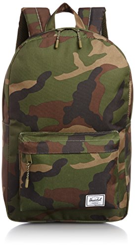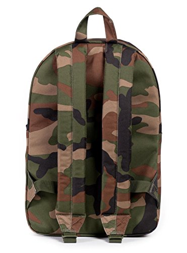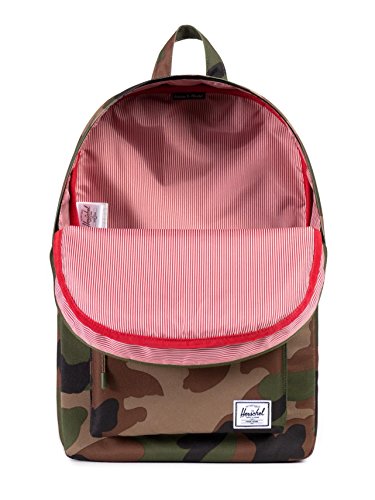 Classic backpack with signature striped fabric lining featuring logo patch on single front pocket and adjustable shoulder straps