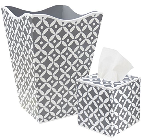 Allen G Designs Hand Painted Wooden Wastebasket and Tissue Box Set - Grey and White Circular Design
