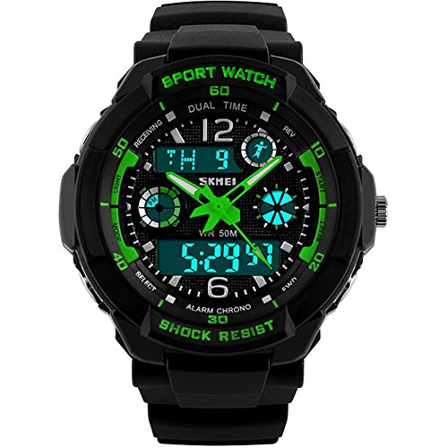 -. Feature : Precise Time Keeping Sports Digital Watch: Dual time zone, analog & digital display, this kids watch provides precise and accurate time keeping. / Multifunctional Child Watch: Design calendar date window, dual time display, 12/24 hour format, alarm, 50m waterproof, shock resistant, El back light display, stopwatch. / Waterproof Children Watch For Daily Use: 164 Ft / 50 M water resistant, support to swim and bathe in cold water. NOTE: please Do Not PRESS ANY BUTTONS in the water or wear this watch for longtime underwater activities. / Comfortable Watch To Wear: High quality PU resin strap, it's very comfortable and easy to wear, also a durable strap for daily using. / Easy To Set Up: It is able to operate the watch by children own. Nice watch for elementary age kids. Kids watch designed for boys and girls beyond 5 years old, fashion gifts for the kids you love.