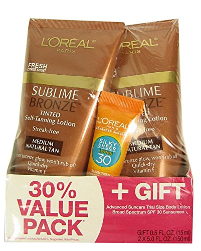 Includes 2 tubes of self-tanning tinted tanning lotion, 5.0 fl. oz. each