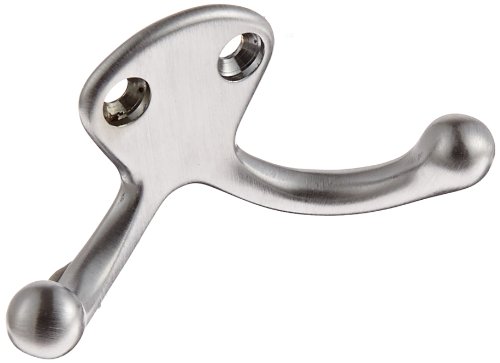Rockwood 796.26D Brass Small Double Coat Hook, 1-1/8" Width x 1-1/8" Height, 1-1/8" Projection, Satin Chrome Plated Finish