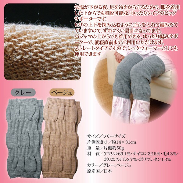 【商品名】裏パイル ビッグサポーター/レッグウォーマー 【グレー(灰)】 日本製 (防寒グッズ)