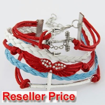 Gelang Korea Multi Charm Salib, Wings & Jangkar Merah