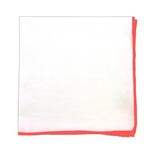 100% Cotton White Solid with Coral Border Cotton Pocket Square