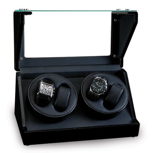 -. Title : Gold and Watches Black Gloss Finish 2-Turntable Winder for 4 Watches