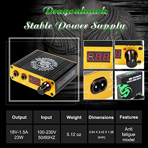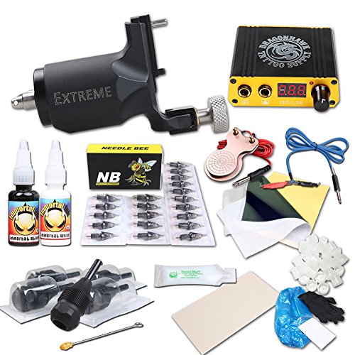 Dragonhawk Complete Tattoo Kits Extreme Rotary Tattoo Machine Mini Power Supply 0.5oz Immortal Tattoo Inks Cartridge Needles 1013-3YMX (Cartridge...