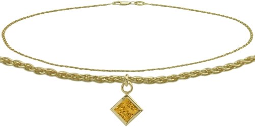 -. Title : 14K Yellow Gold Wheat Anklet with Genuine Citrine Square Charm