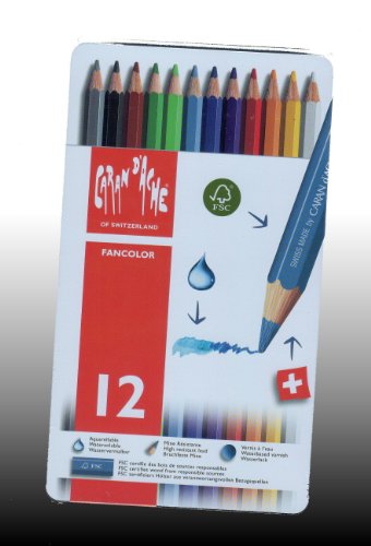 -. Feature : Creamy - soft - water-resistant / 3.7mm leads / Exceptional covering power and superb lightfastness / Ideal for shading - mixied media / Set of 12 Colored Pencils