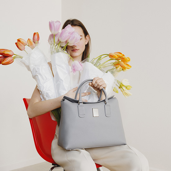 - 간편한 여밈과 사다리꼴의 통수납력으로 데일리로 사용 가능한 디자인.