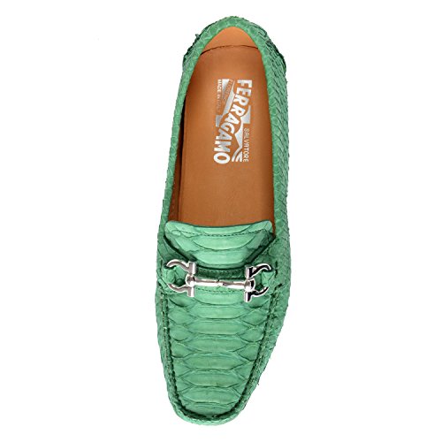 (Salvatore Ferragamo)/Women's/Loafers Slip-Ons/DIRECT FROM USA/Salvatore Ferragamo Parigi P. Women's Python Skin Green Moccasins Loafers Shoes US 7.5M IT 8M EU 38M