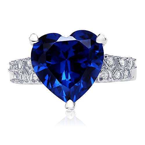 -. Title : Sterling Silver Heart Shaped Simulated Blue Sapphire with Clear Cubic Zirconia Ring, 12mm