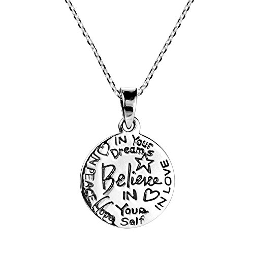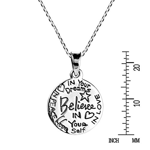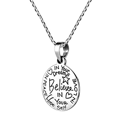 -. Title : "Believe" Inspirational Message .925 Sterling Silver Necklace