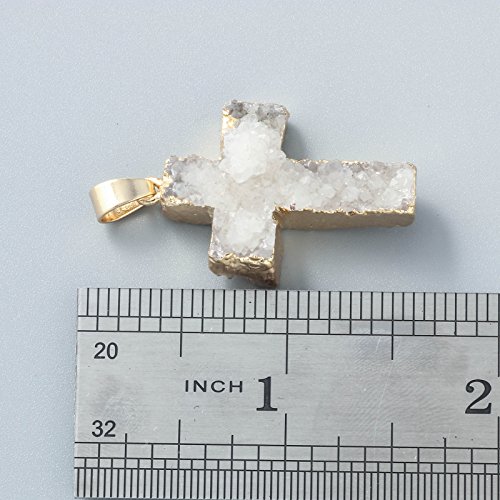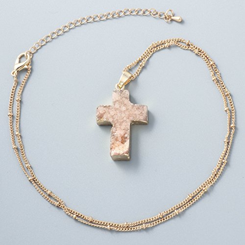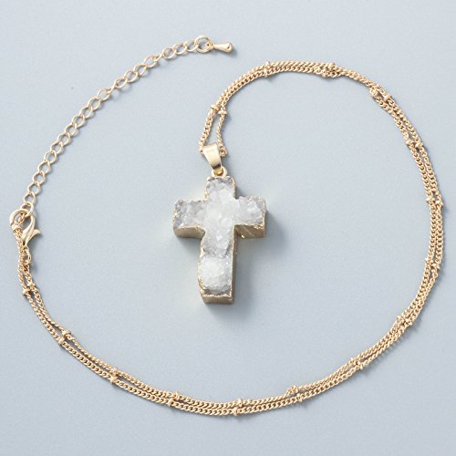 -. Title : Bonnie Cross Pendant Natural Stone Quartz Golden Plated Necklace 21"with 3 extender Chain Necklace for Women