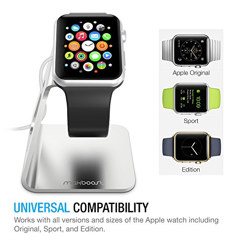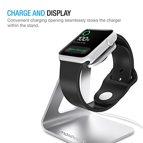 Apple Watch Series 2 Stand, Maxboost Apple Watch Dock Charging Stand [Aluminum Platform/Holder/Cradle [38mm and 42mm Series 1/2 Sport/Edition 2015 2016] [Cable, Band,Case,Watch NOT INCLUDED] - Silver