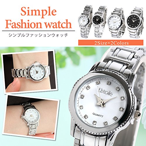 【 레토와루】Letoile 손목시계 라인 스톤 인덱스 레이디스 맨즈 심플 워치 CD14 (블랙S)