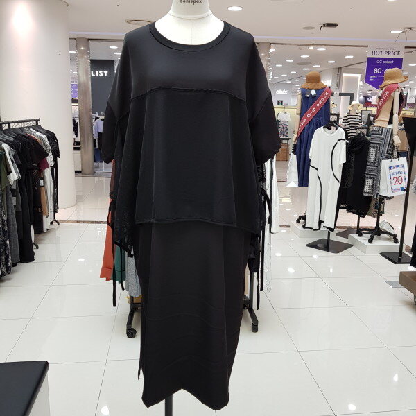 메쉬소재가 레이어드 되어 독특하면서도 시원해보이는 롱원피스입니다.