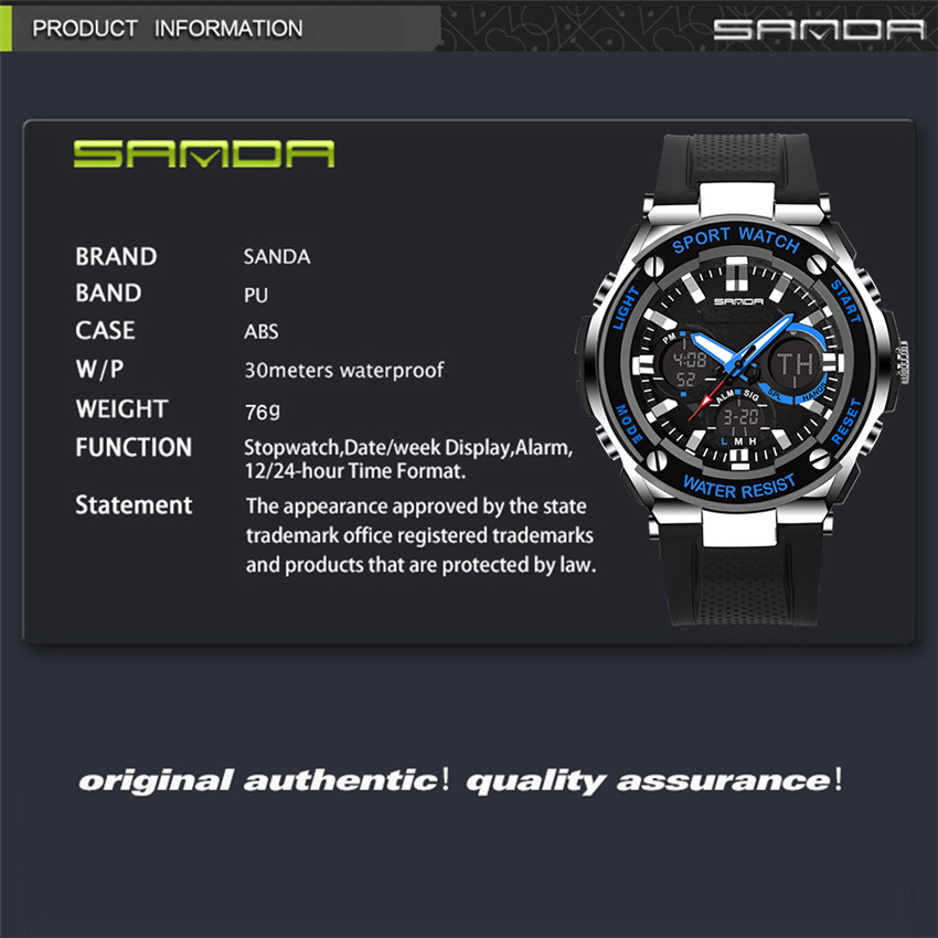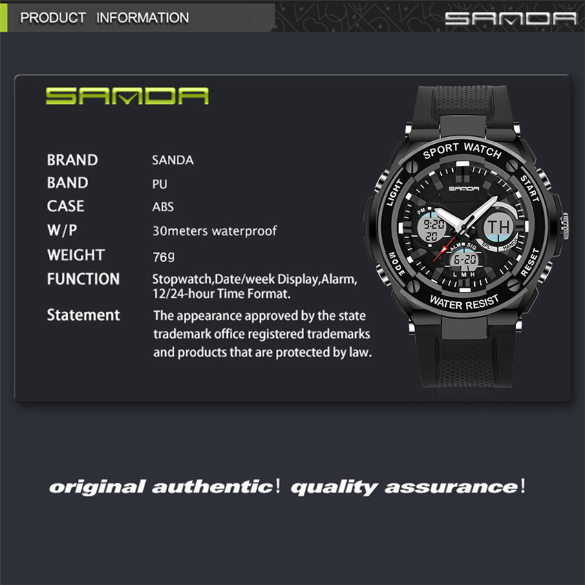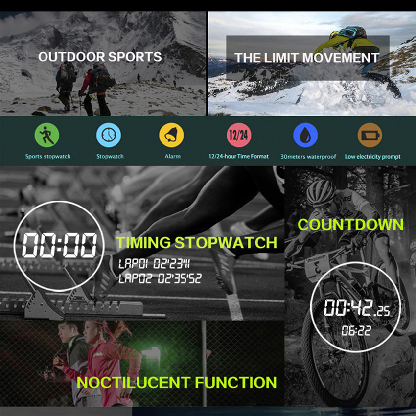 Function:Stopwatch, Date/Week Display, Alarm, 12/24-hour Time Format, Noctilucent, Water Resistant
