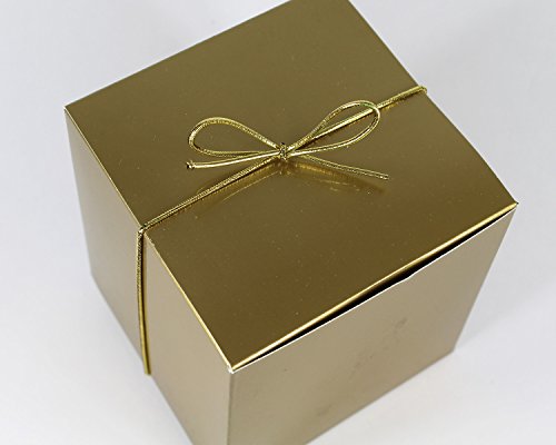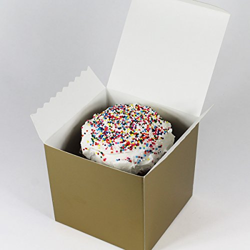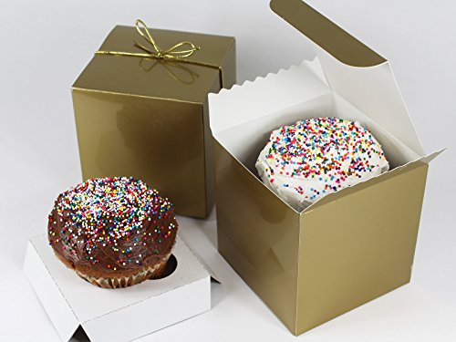 Gold Single Cupcake Gift Box Set with Inserts and Metallic Gold Stretch Loop Bow by Saybrook. Set of 10 Individual 4x4x4 Square Boxes, Holders and Bows (10, Gold)