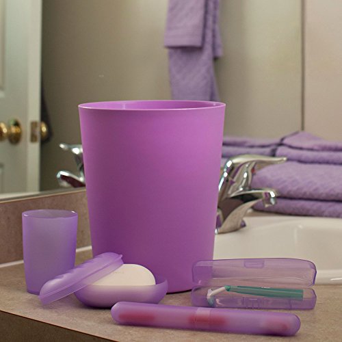 Throw Blanket (50" x 60"), 5 Piece Toiletry Set: Trash Can (7.5" x 7.5" x 9"), Tooth Brush Case, Soap Case, Razor Case, Cup