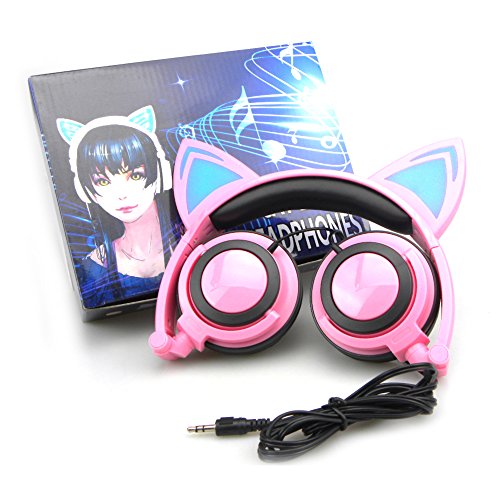 -. Title : Cat Ear Headphones with Glowing Lights (Pink)
