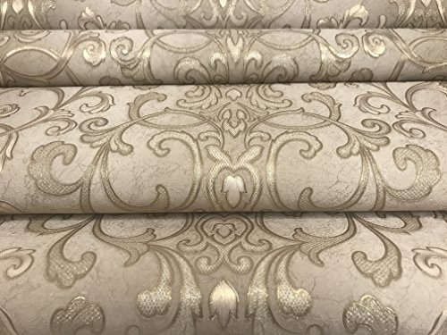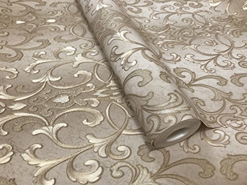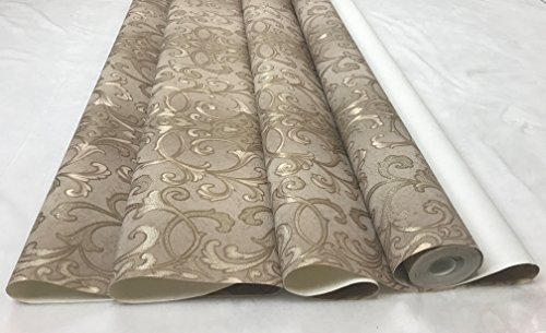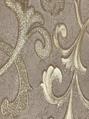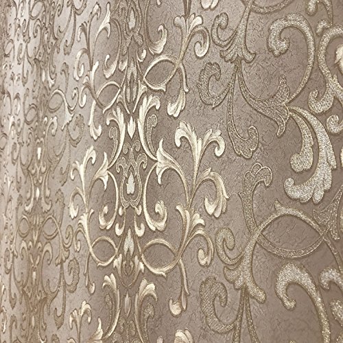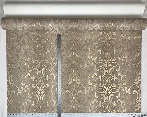 -. Title : paste the wall modern Embossed Slavyanski wallcovering roll victorian pattern Vinyl Non-Woven Wallpaper grey gray brown coffee hue silver sparkles gold metallic textured stripes 3D damask vintage styl