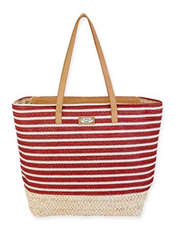Red & White Stripe Classic Shoulder Bag, Poly Straw