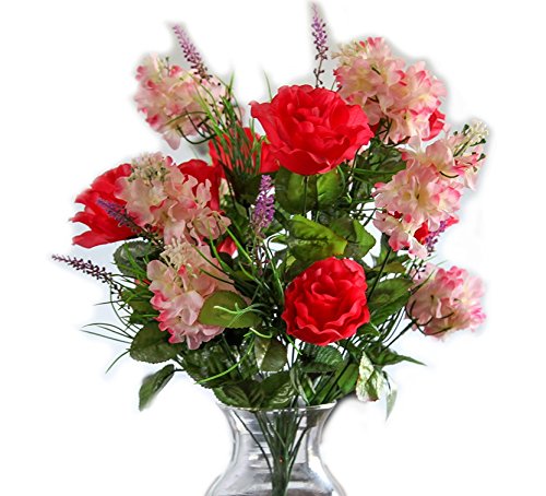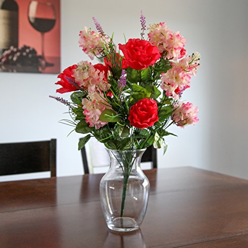 Home-X Floral Bouquet with Red Roses, Pink Delphinium and Purple Lavender
