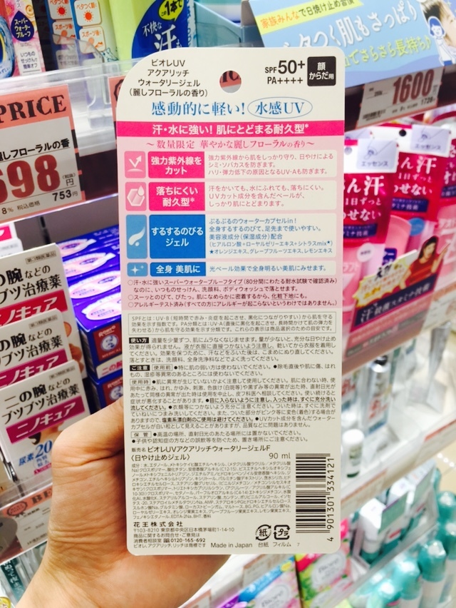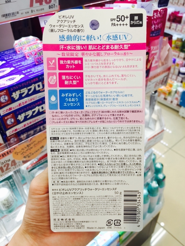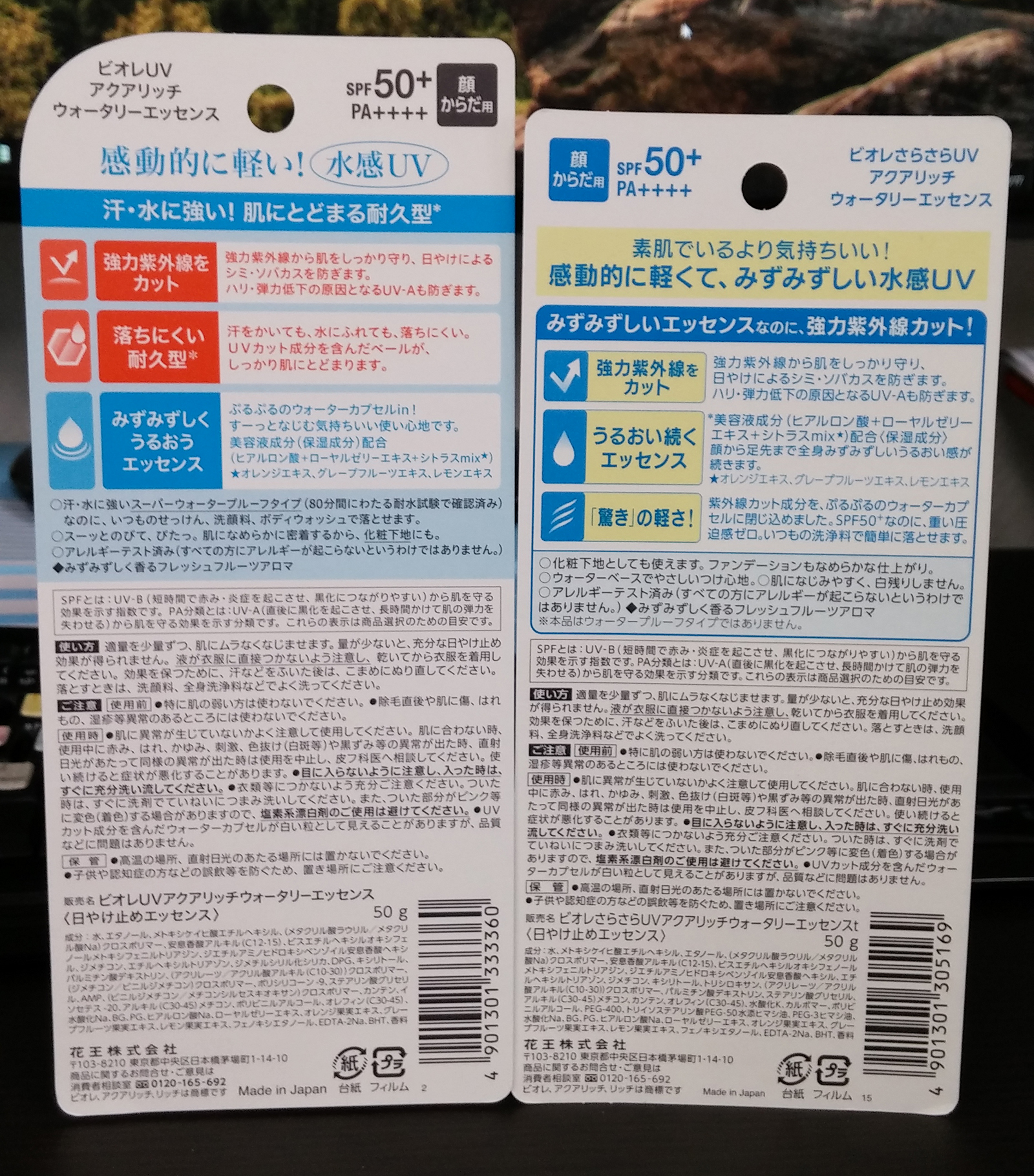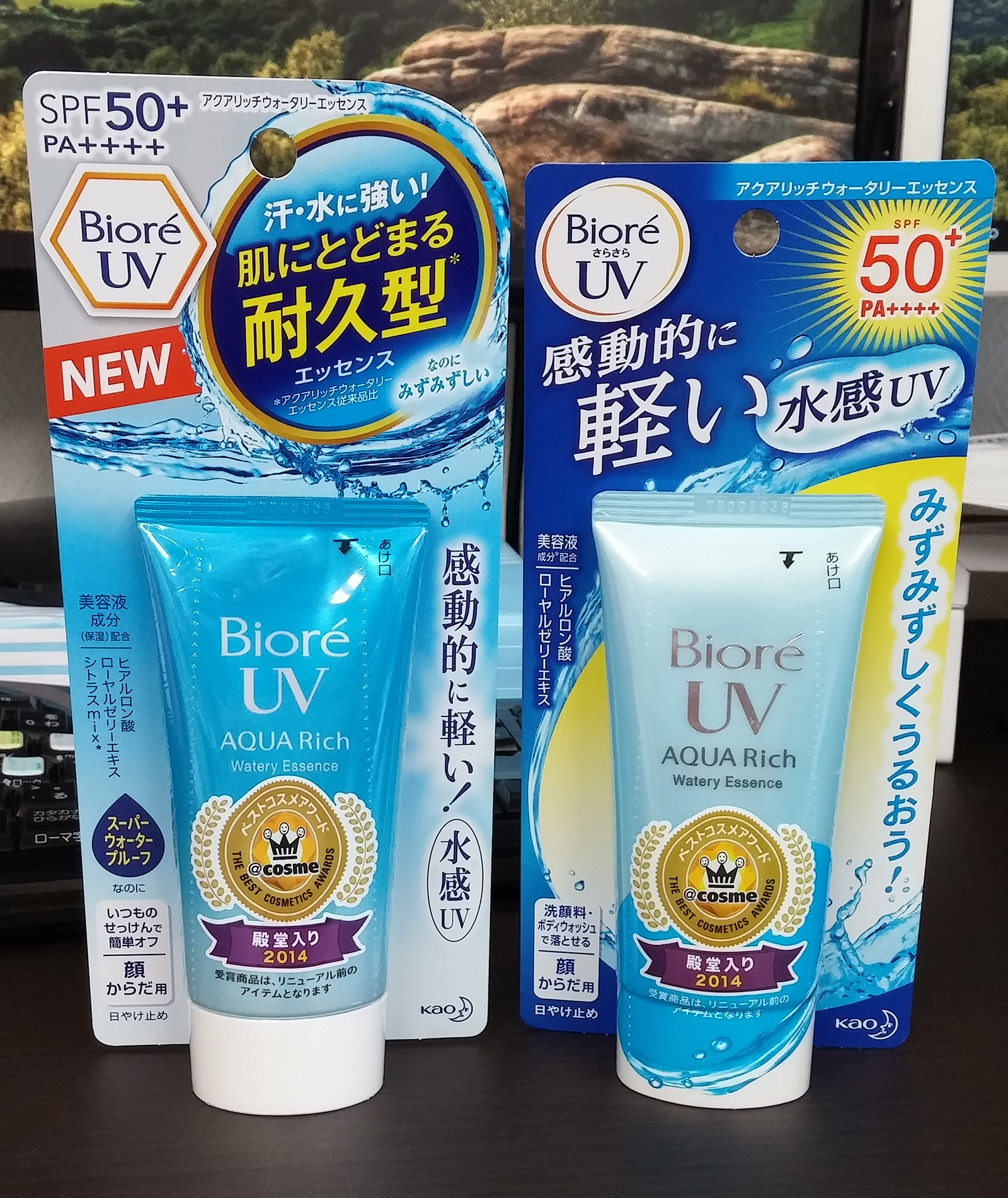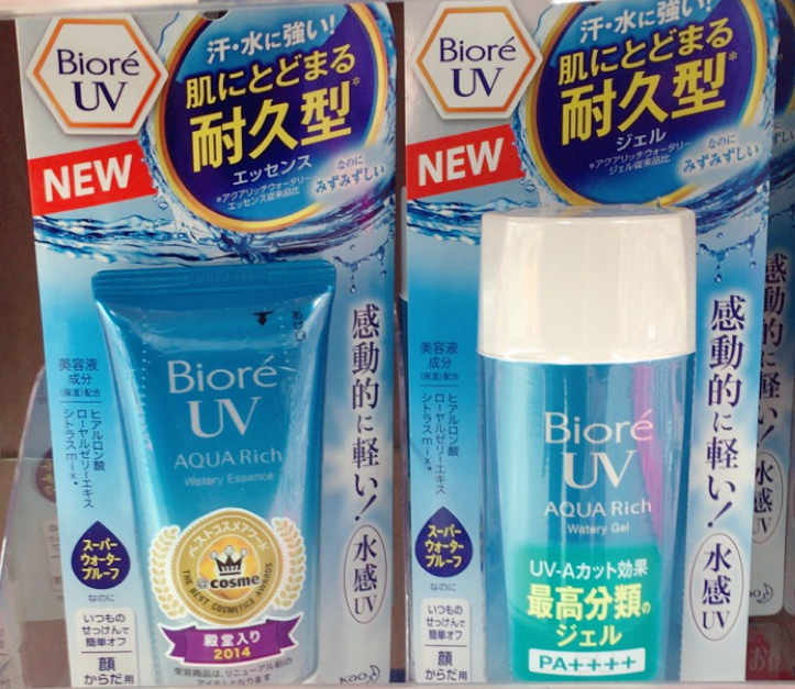 일본 간판 선케어 비오레 아쿠아리치 워터 에센스 선크림과 워터 젤입니다