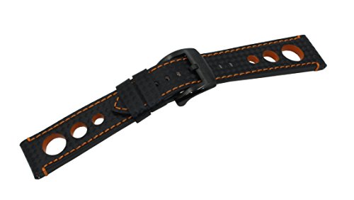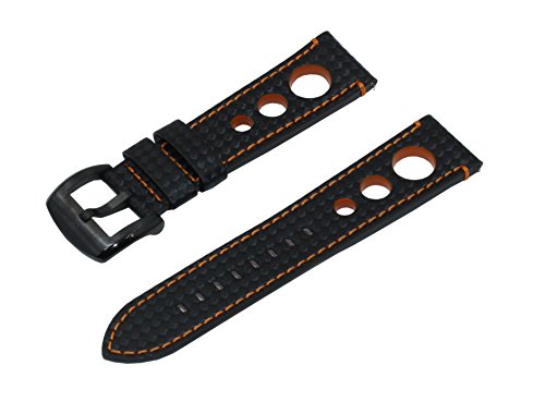 Binding : Watch Product Description The key feature of these watch bands was inspired by the large perforations typically seen in the leather racing gloves of the 1970s - but we have updated and embellished those classic looks. The ever popular black carbon fiber embossed Italian tanned calfskin leather is the base of this striking watch band. The cut edge construction band is lined with an exquisite vegetable tanned vachette leather that ensures this watch band can be worn by those with the most sensitive skin without problems. Each band carries its own certificate number that corresponds to the specific batch of leather the lining was cut from - your assurance of quality. The band is finished with contrasting orange stitching around its edge and the distinctive tapered rally holes are painted in contrasting [Highlight] and the outer edge finished in black. Paired with our Signature 20mm brushed black stainless steel buckle with polished shoulders from SWISS REIMAGINED,made from marine grade 316L stainless steel it features the SWISS REIMAGINED logo etched into the middle of the cross bar - this band and buckle combination will attract great attention. 0