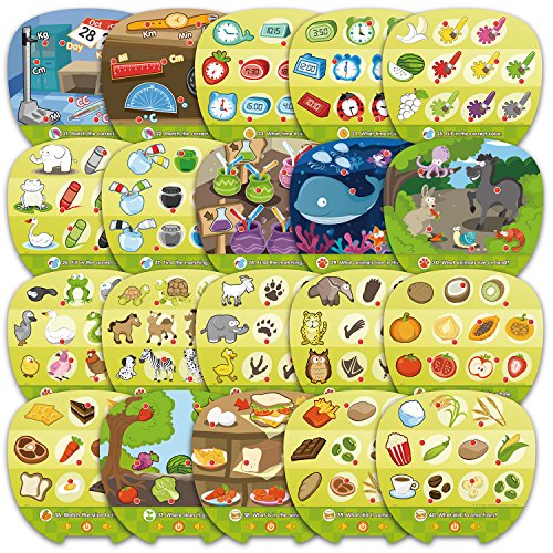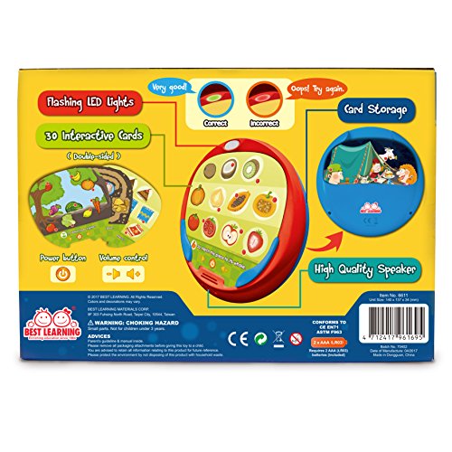 This set comes with 30 double-sided learning cards (60 lessons), volume control, and a compartment on the back for storing cards.