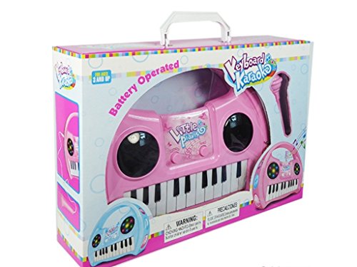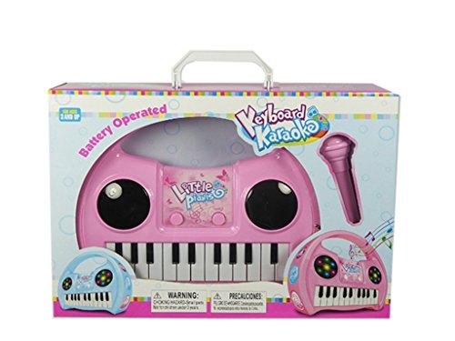 Children's karaoke machine. Our kids karaoke keyboards have a functional keyboard and microphone that is perfect for your inner crooner. You can sing to the pre-recorded songs or pick out a tune on the keys. 3 "AA" batteries required - not included. This kids keyboard is great for a little musician.