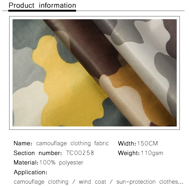 Application :camouflage clothing,wind coat,sun-protection clothes...