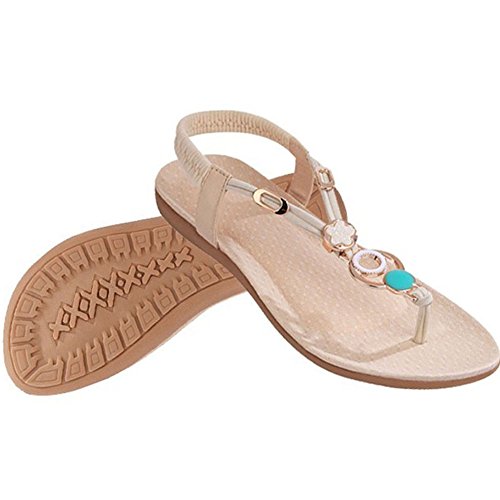 -. Title : OvMax サンダル レディース ボヘミアン ぺたんこ ストラップ ビーチサンダル フラット ビジュー