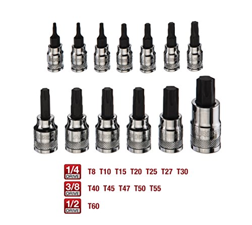 13-Piece Standard Torx Bit Socket Set | ARES 70102 | Size Range from T8-T60 in ¼”, 3/8”, and ½” Drive