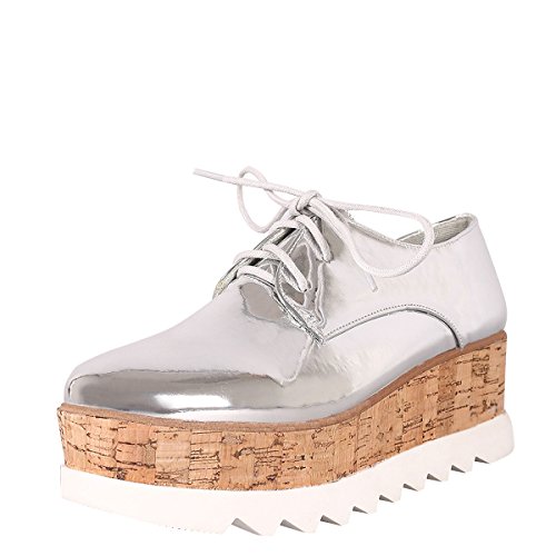 -. Title : Bamboo Womens Round Toe Lace Up Metallic Creeper Oxford Lug Sole Cork Wedge Platform Heel Sneakers