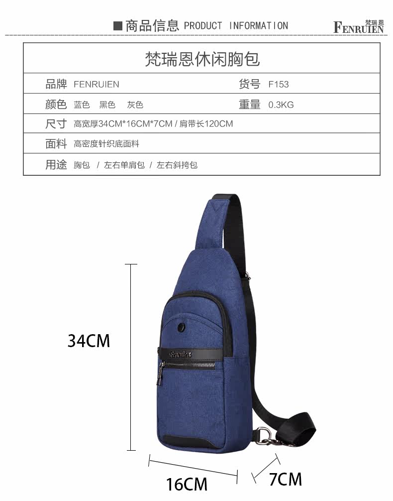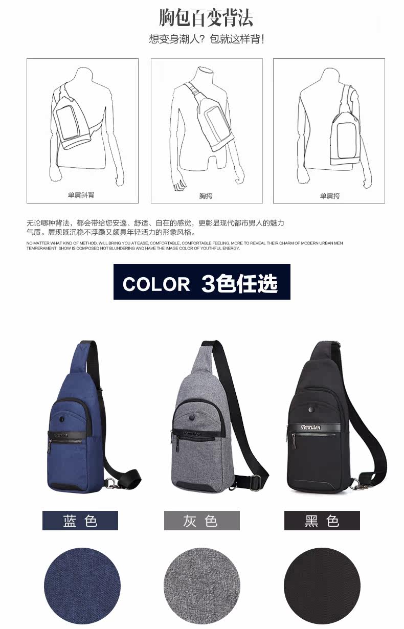 新款胸包男士单肩包男斜挎包休闲帆布包韩版潮男包运动小背包