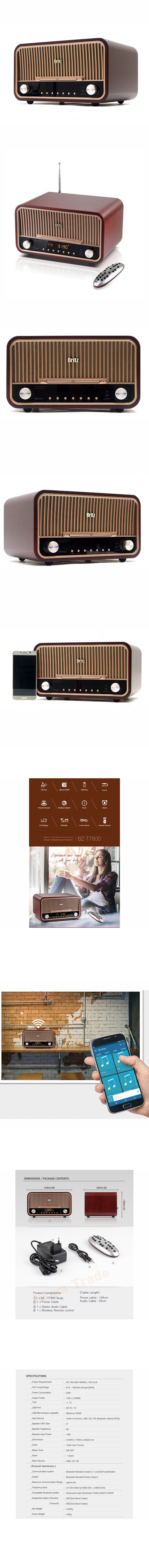 Britz BZ-T7800 Desktop Bluetooth 2.1 EDR CD Audio Radio All-in-One Speaker & Simple English User Guide