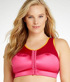 -. Feature : Sports bra, Encapsulation and compression design holds breasts in place, High neckline stabilizes breasts providing superior support and comfort / High impact, Wide non-stretch straps evenly hold breasts while reducing bounce, shoulder fatigue and discomfort, Front hook and eye closure perfect for easy on and off / Moisture management fabric Naturexx keeps you cool and comfortable / Wrap knit compression fabric is soft next to skin, Full back and cross strap design provides posture enhancing back support and a smooth line / Will not cling to other clothing, Activities: soccer, skiing, basketball, running, softball, volleyball, aerobics, etc, 90% Nylon 10% Lycra Spandex