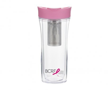 Borosilicate glass tea tumbler by Trudeau is BPA-Free; portion of the sale of all BCRF products goes to the Breast Cancer Research Foundation