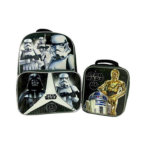 -. Brand : Disney -. Color : Black -. Department : boys -. EAN : 0840716153870 -. Feature : Extra Front Pocket and Lunch bag -. ProductGroup : Apparel -. ProductTypeName : LAGE -. Size : Large -. Title : Star Wars Darth Vader and Stormtrooper Backpack with R2D2 and C3PO Lunch Bag -. UPC : 840716153870