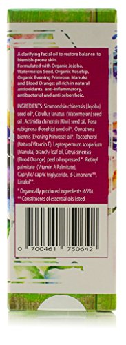 -. Feature : A clarifying facial oil to restore balance to blemished skin. / Formulated with Vitamin A, Jojoba, Watermelon and Manuka Oils ; all rich in natural antioxidants, anti-inflammatory and antibacterial. / Sulphate-free, Mineral oil-free, Artificial colour-free, Artificial fragrance-free and Petrochemical-free. / Made with organically produced ingredients (65%), Suitable for Vegans and No Animal Testing. / 30ml