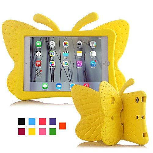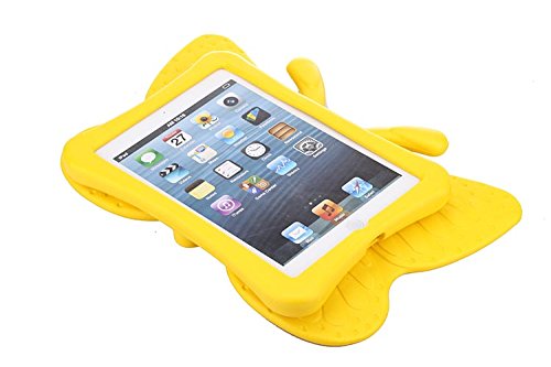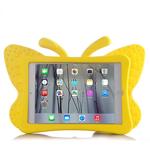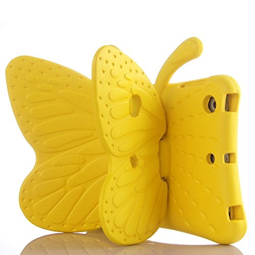 iPad mini case, Leebay Non-toxic Light EVA Kids-use 3D Cartoon Butterfly ipad mini 4 case, Shockproof Cover with Stand for kids (Yellow)