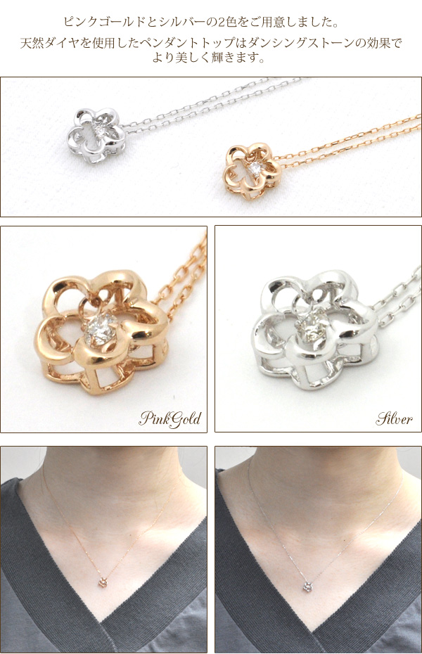 花の形をしたペンダントトップが可愛らしいアイテムです。